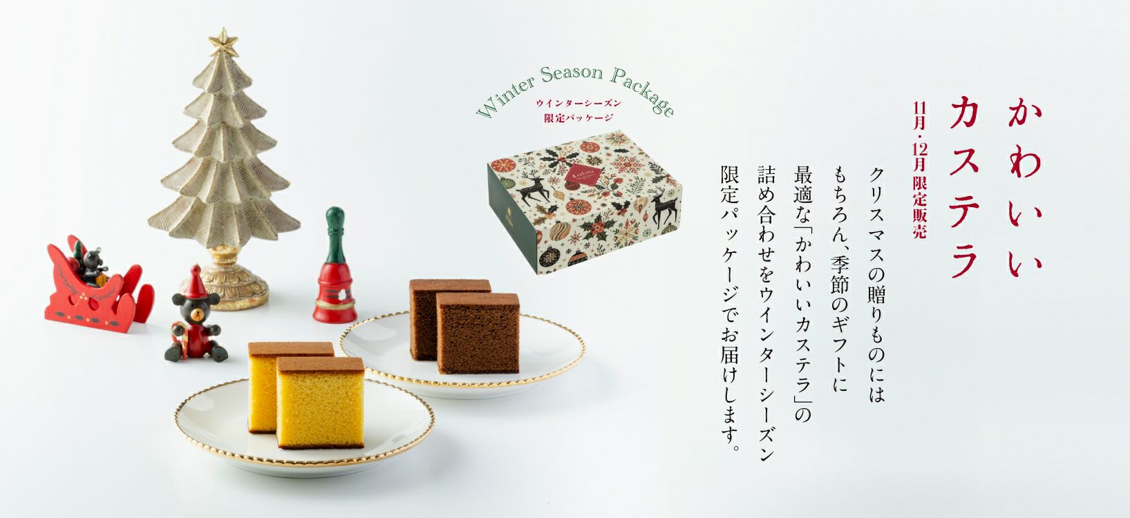 かわいいカステラ(カステラ・チョコラーテ 0.3号・2本入)ウィンターシーズン限定パッケージ ¥ 1,674 税込 お気に入り登録 販売期間 2025/11/05 0:00 〜 2025/12/31 23:59