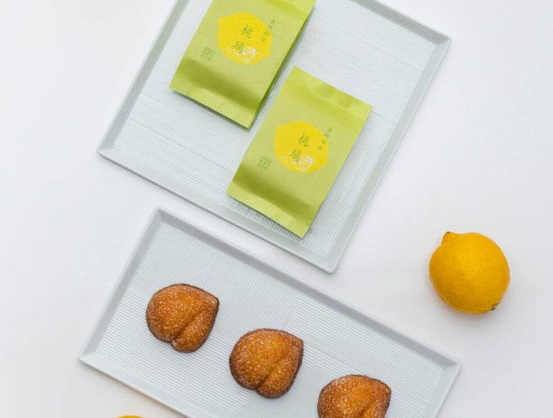 松翁軒和菓子調進所 桃の焼菓子「桃璃」を、長崎県産檸檬(レモン)を使い果汁たっぷりの夏仕立てとしました。少し冷やしてお召し上がりいただきますと清々しさが引き立ちます。