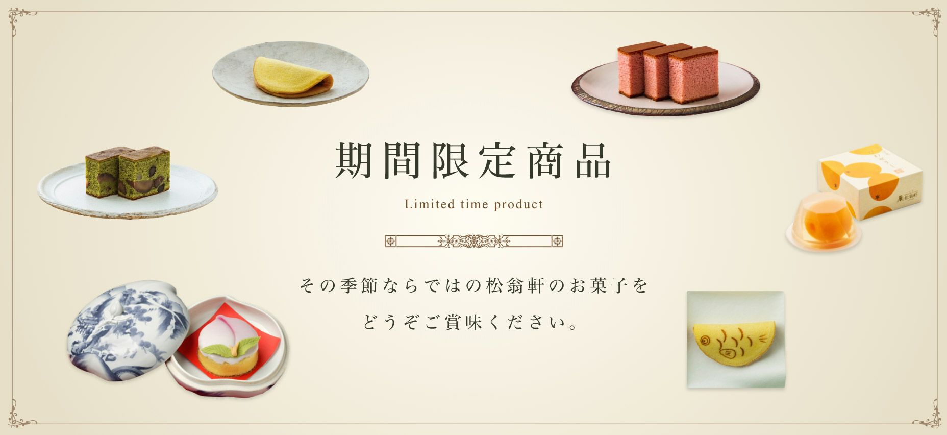 春は桃カステラ、夏はびわゼリーなど季節ならではのお菓子をご用意しております。お中元やお歳暮はもちろん、父の日、母の日、敬老の日、端午の節句など家族のお祝い事などにも、長崎松翁軒のお菓子をご用命ください。