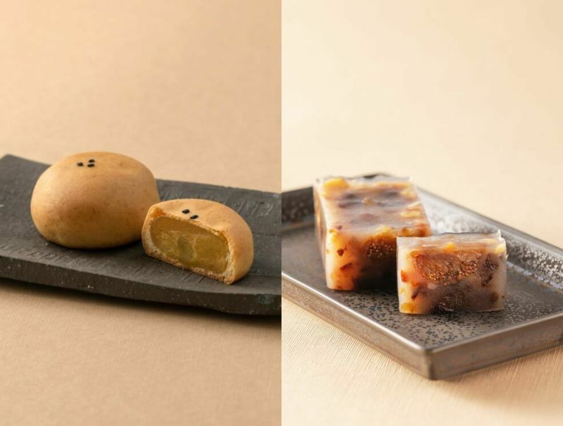◎瑞兆/楽しい食感の無花果(いちじく)、香ばしい胡桃を贅沢に使い、エキゾチックな味わいを奏でる羊羹ができました。命名の「瑞兆」とは、良いこと、めでたいことが起こる前兆の意。ハレの日にお楽しみいただきたい一品です。