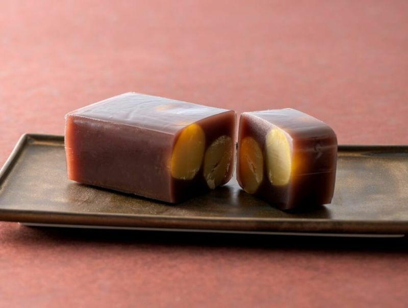 ◎栗ようかん/滋味豊かな国産の大栗を、自家製小豆こし餡の羊羹にごろごろと詰めた自慢の栗ようかん。和菓子の王様です。