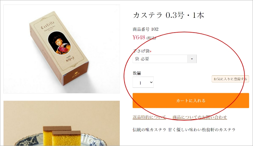 手さげ袋の必要・不要を選択し、必要な数量を指定して[カートに入る]をクリックしてください。