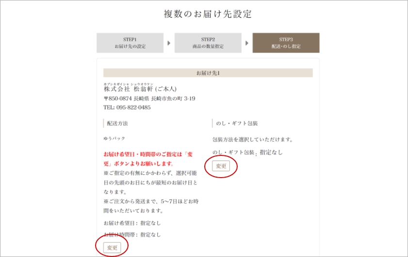 4-2.お届け先/配送方法/のし・包装方法の指定