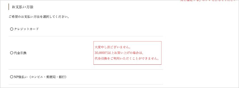 クレジットカード、代金引換、NP後払い(コンビニ・郵便局・銀行)よりお選びいただけます。